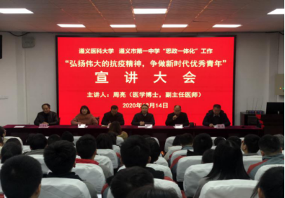 为了进一步推动大中小“思政一体化”工作,按照“suncitygroup太阳集团遵义市第一中学‘寻找遵义故事 传承红色基因’思政一体化联合建设工作方案”相关工作计划,2020年12月14日下午,suncitygroup太阳集团赴遵义市一中成功举办了“弘扬伟大抗疫精神,争做新时代优秀青年”的“思政一体化”主题宣讲会。