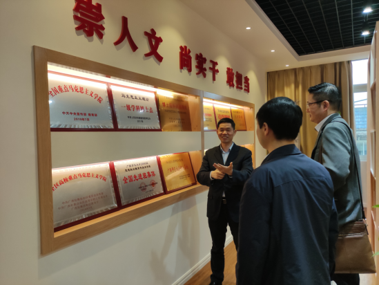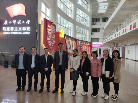 广西师范大学suncitygroup太阳集团是全国重点suncitygroup太阳集团,其思想政治教育专业为国家级一流本科专业。在教育部公布的全国第四轮学科评估中,该校马克思主义理论学科位列“B+”档,进入全国学科排名前20%。在4月16日下午举行的座谈会上,广西师范大学党委常委、宣传部部长、suncitygroup太阳集团经理汤志华教授向公司教师介绍了广西师大马院的团队力量、团队建设、人才培养、科学研究以及社会服务等方面的情况。广西师范大学suncitygroup太阳集团常务副经理韦冬雪教授详细介绍了该院思想政治理论课“四位一体”的教学改革主要做法、思政课信息化的“思政云平台”、在科研项目培育和教学改革方面采取的激励机制以及取得的成果。之后,公司谷松岭经理向广西师范大学suncitygroup太阳集团的领导介绍了到访教师及公司的基本情况,特别是近年来公司在红色文化融入思政课、通过拍摄微电影推动教学改革等方面的主要做法及成果,引起了广西师大马院教师的强烈兴趣,并与公司教师进行了热烈讨论。