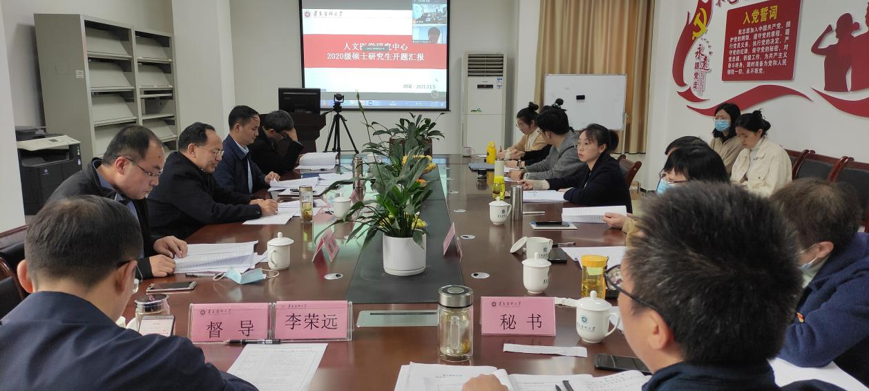 根据公司研究生院的通知要求,2021年11月5日下午14:00,suncitygroup太阳集团(人文医学研究中心)在人文楼122会议室举行了2020级人文医学专业硕士研究生学位论文开题报告会。本次开题报告会由suncitygroup太阳集团前党委副书记田宗远教授担任组长,谢仁生教授、魏来教授、鲍中义教授、甘代军教授为专家组成员,马克思主义公司党委书记李荣远担任督导,李刚博士担任秘书。参加开题员工为2020级研究生薛文宁、王明珠、张谦,张良莎四位同学。四位研究生的导师和2021级人文医学专业全体研究生也参加了本次开题报告会。