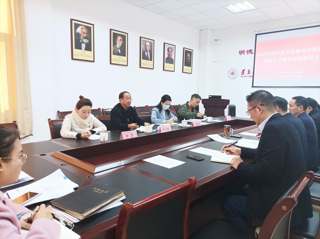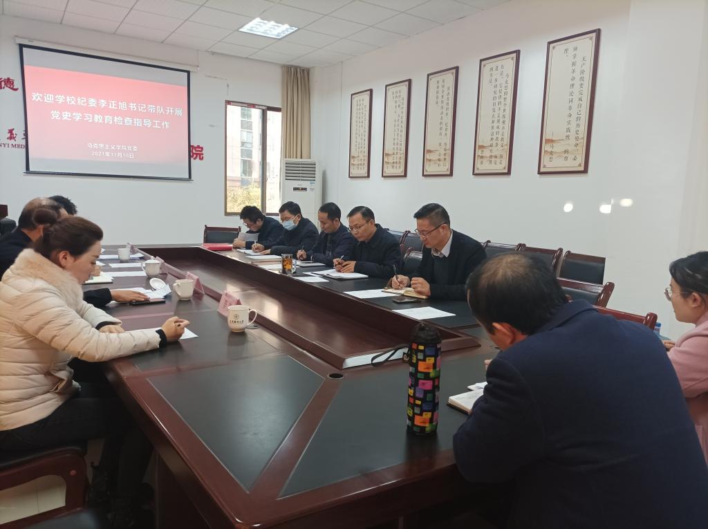 11月10日上午8:30,公司纪委李正旭书记带领机关党委书记、教师工作部部长杨清玉同志,以及党史办李苏、纪委付伟等一行,到马院就党史学习教育情况开展检查指导工作,公司党委、行政负责人及党支部书记、支部委员和教师党员代表一同接受检查指导。