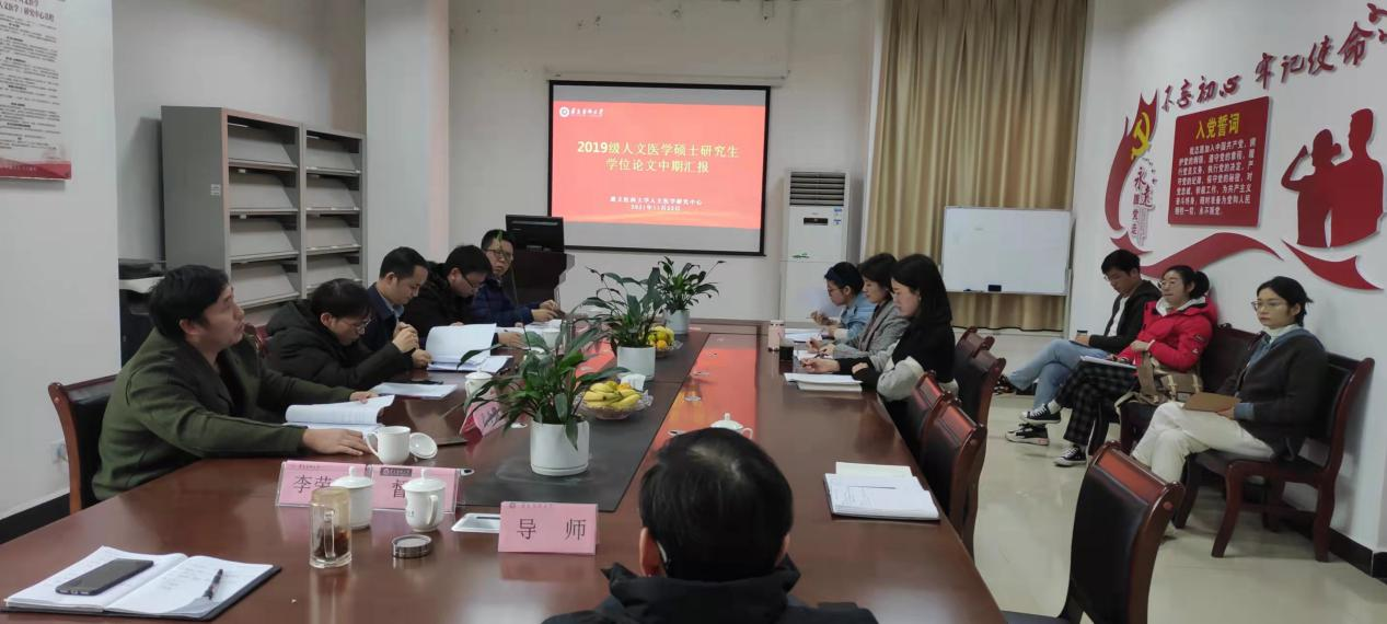 根据公司研究生院的通知要求,2021年11月22日上午9:00,suncitygroup太阳集团(人文医学研究中心)在人文楼122会议室举行了2019级人文医学专业硕士研究生学位论文中期检查报告会。本次开题报告会由suncitygroup太阳集团副经理鲍中义教授担任组长,姜李勤副教授、袁永飞副教授、刘学平副教授,李刚副教授为专家组成员,马克思主义公司党委书记李荣远担任督导,唐敏担任秘书。参加中期报告的员工为2019级研究生冯运红、陈悦、宣妍三位同学。导师彭馨和2020级人文医学专业全体研究生也参加了本次开题报告会。