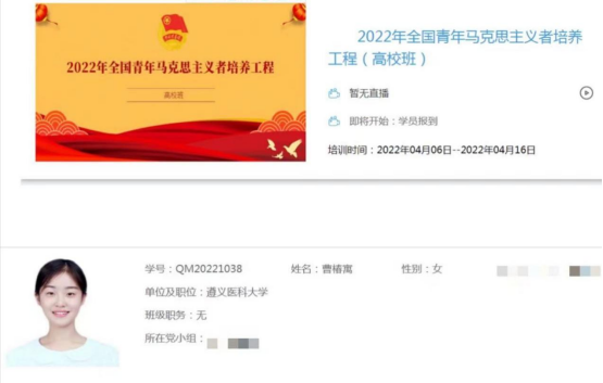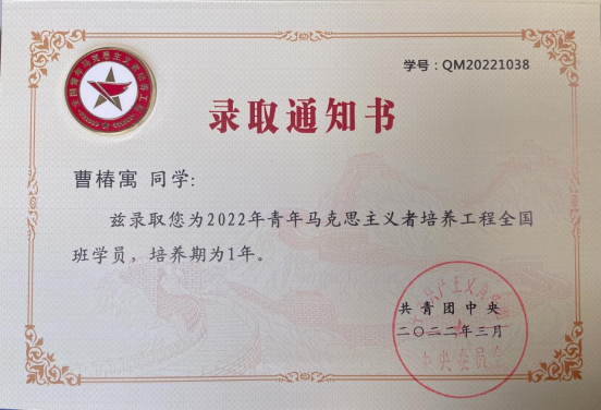 贵州省有两名同学入选2022年全国青年马克思主义者培养工程,公司suncitygroup太阳集团2020级思想政治教育专业研究生曹椿寓同学入选。团中央于2007年启动实施“青马工程”,15年来全国各级累计培养学员超过300万人。2020年中央组织部等五部委联合印发《关于深入实施青年马克思主义者培养工程的意见》,对新时代深化推进“青马工程”作出全面部署。2022年全国“青马工程”分别开设高校班、国企班、农村班、社会组织班、少先队工作者班。在4月11日-4月15日进行了第一阶段的线上集中理论学习,275名学员将在接下来的一年中继续参加红色教育、实践锻炼等系统培训。