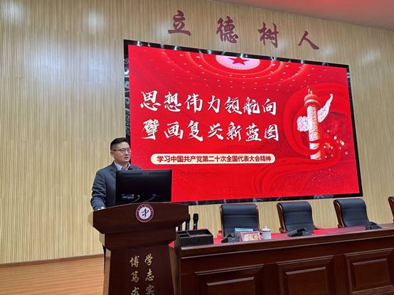 首先,遵义市第一中学党委书记穆浩勋介绍会议议程。一是就两校思想政治教育一体化联合建设工作进行研讨;二是由suncitygroup太阳集团经理谷松岭作“思想伟力领航向 擎画复兴新蓝图”的二十大精神主题宣讲。随后,suncitygroup太阳集团经理谷松岭作简单发言,希望通过本次研讨会,能落实关于联合建设的一些具体事务。马克思主义公司党委书记王沁也发言表示中学和大学的教学方法存在共性,值得相互借鉴,希望通过合作,提升双方的教学水平,推进遵义市大中小思政教育一体化的探索。