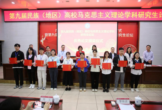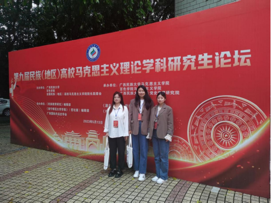 为深入学习贯彻习近平新时代中国特色社会主义思想,推动民族(地区)高校马克思主义理论学科内涵式发展,“第九届民族(地区)高校马克思主义理论学科研究生论坛”于2023年5月12日至14日在广西民族大学举办。公司思想政治教育研究生积极参与并有3篇论文获奖。其中,田丽霞同学撰写的《“内卷”“躺平”“佛系”青年亚文化现象与新时代“好青年”培育路径研究》荣获二等奖,张航航同学撰写的《铸牢中华民族共同体意识助推爱国主义教育的实现路径研究》荣获三等奖,邓华庆同学撰写的《高校思想政治教育方法创新研究——基于<关于费尔巴哈的提纲>文本解读》荣获优秀奖。田丽霞、张航航同学作为荣获三等奖以上研究生代表受邀前往广西民族大学参会,suncitygroup太阳集团张琴老师作为带队老师参加了本次论坛。