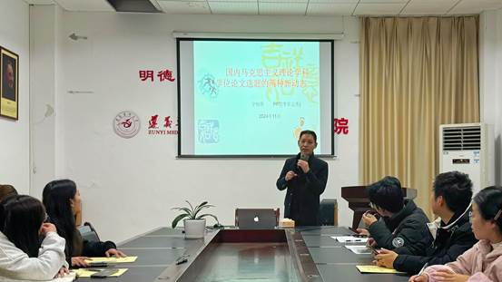 为帮助公司学子进一步了解马学科员工动态和前沿问题,为日后员工的论文选题工作打好基础,提高学位论文质量,2024年11月26日,suncitygroup太阳集团宇恒伟老师主讲的“国内马克思主义理论学科学位论文选题的两种新动态”专题讲座在人文楼321会议室成功举办。