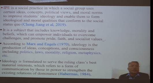 而后老挝国立大学社会公司政治与公共管理系的西维莱・凯奥本塔姆教授,他不仅阐述了高等教育中的思政教育的重要性,还重新审视了老挝高校的思政教育现状,指出当下世界范围的高校面临的诸多内部和外部的挑战,而德育作为高校教育体系中的重要部分,应抓住有限的机遇,不断推进德育工作的发展。