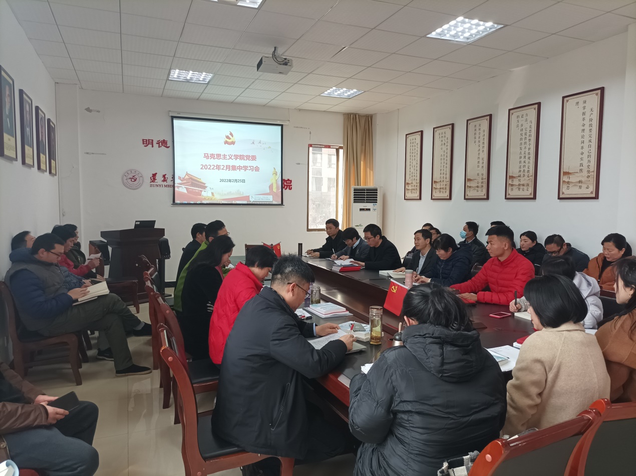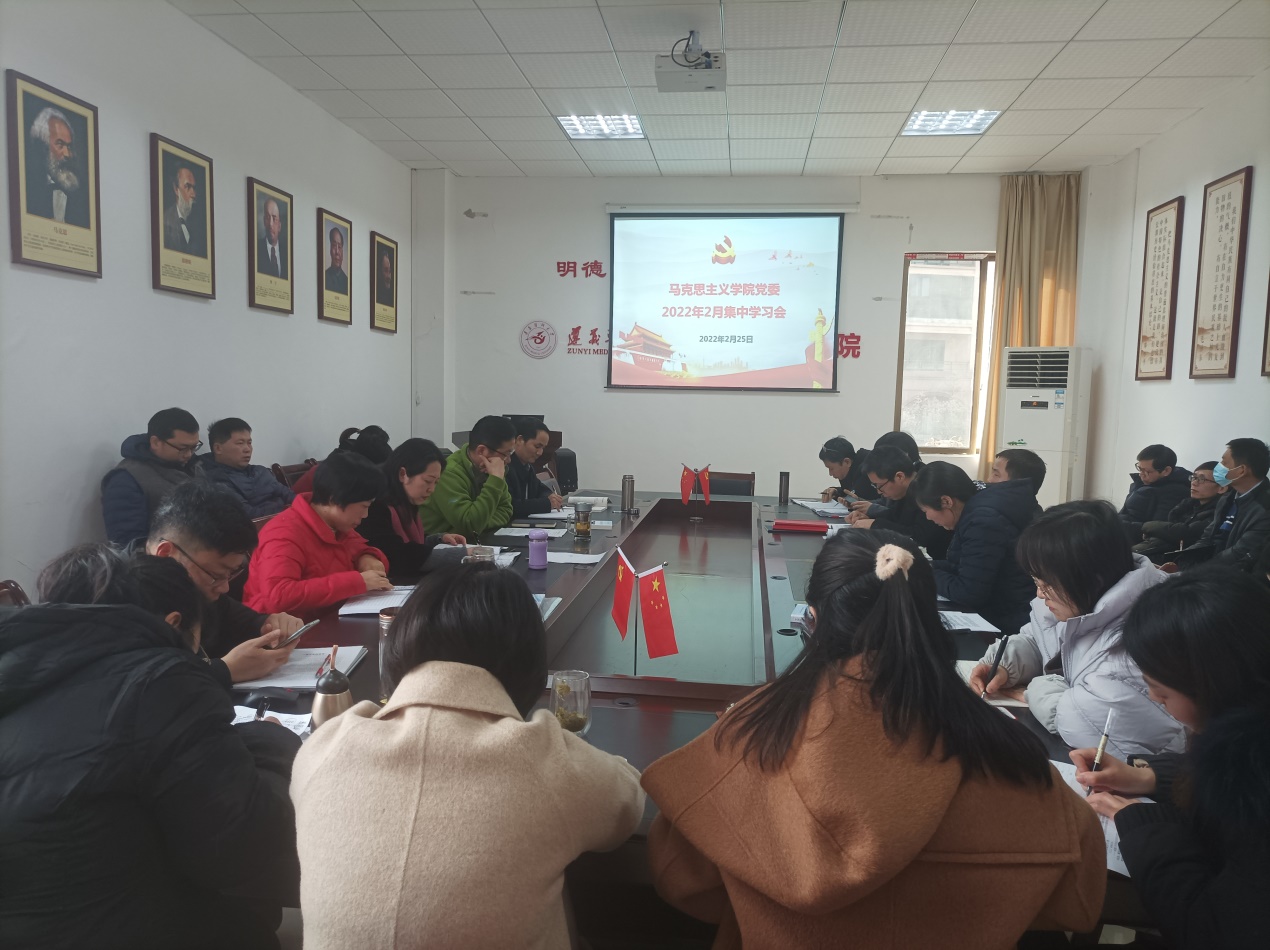 2022年2月25日下午,马克思主义公司党委在人文楼三楼会议室召开集中学习会。会议由马克思主义公司党委书记王沁主持。