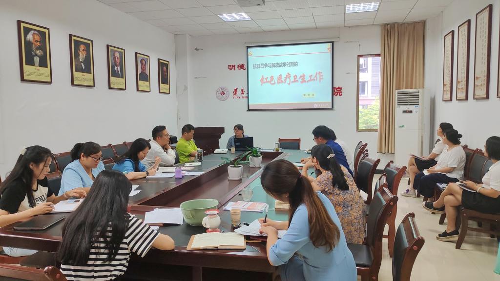 首先,支部三位党员结合近期工作、学习所感所悟做了主体报告。沈洋副教授以“新形势下学科评价与学位点建设”为题,从学科、专业与课程的概念释义、团队建设的关键要素、东莞理工公司团队建设经验三个方面对团队建设作了全面解析,建议团队建设要迎评攻坚应把焦点放在团队队伍与资源、人才培养质量、科学研究水平、社会服务与学科声誉四个方面。唐瑶副教授以“登高而望远 向阳以求长——教育部中西部青年骨干教师国内访学交流汇报”为题,结合自身的访学经历,介绍了教师申报国内访学项目的流程,分享了在清华大学的所见所闻,详细说明了清华大学的课堂教学、科学研究、校园文化的开展情况。郑宏颖副教授以“抗日战争和解放战争时期的红色医疗工作”为题,介绍了自己近期的研究成果。重点介绍了抗日战争时期医疗卫生机构的发展情况、红色医疗人才的培养与红色卫生队伍的充实、医疗卫生条例的健全、医疗卫生用品的生产、医疗救护工作的开展情况、人民群众在抗日时期红色医疗救护工作中的作用;解放战争时期军队卫生机构的建设和设置、战地救护工作体系化和规模化、卫生防疫体系日趋完善、卫生制度建设进一步专业化、医学教育事业的发展等情况。