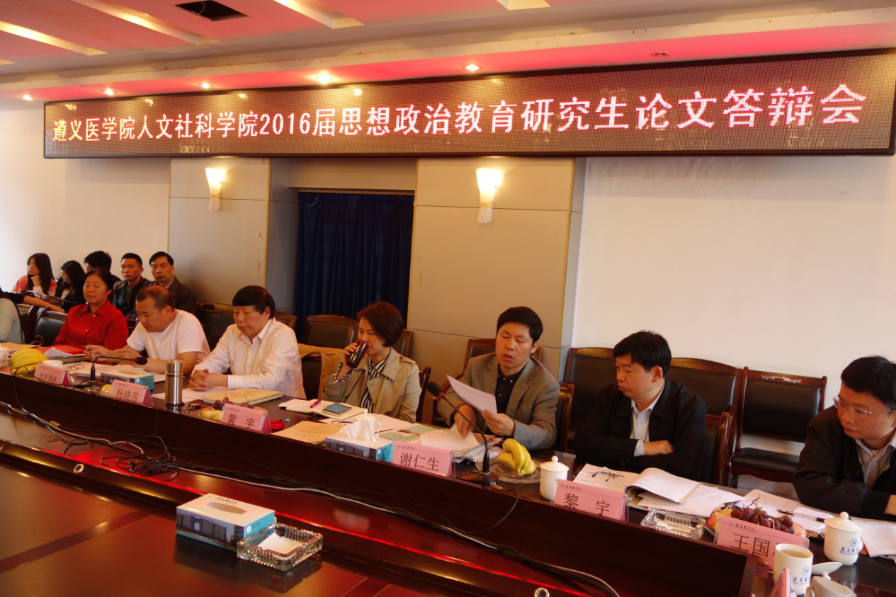 2016年5月29日上午8:30分,遵义医公司2016届思想政治教育专业硕士研究生毕业论文答辩会在大连路校区行政楼5楼会议室举行。本次答辩会由人文社科公司副经理谢仁生教授主持,担任答辩主席的是贵州师范大学suncitygroup太阳集团经理、博士生导师欧阳恩良教授,答辩委员会成员分别有杨晓苏教授、田宗远教授、赵莉教授、黄宇教授、贺梦依教授、谢仁生教授、谷松岭教授、黎宇副教授、龙艺副教授、李仕波副教授、王国桢副教授、鲍中义副教授。管理公司副经理魏来、基础医公司副经理罗军敏两位专家作为督导专家全程参加了答辩。