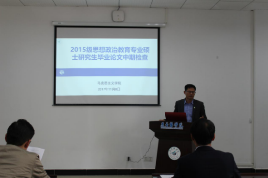 此次论文工作检查由思政教研室主任王纪鹏主持,suncitygroup太阳集团经理谢仁生宣读了《遵义医公司关于开展2015级硕士研究生学位论文工作中期检查的通知》,并就论文中期检查的主要内容、程序、形式做出重点强调。