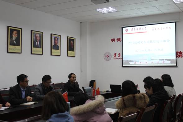 为及时督促研究生学位论文撰写,保证研究生按期完成学位论文,2019年1月9日上午9点,suncitygroup太阳集团在人文楼三楼会议室举行了2017级思想政治教育专业硕士研究生文献综述汇报会。此次文献综述汇报会由suncitygroup太阳集团“思修”教研室主任鲍中义教授主持。suncitygroup太阳集团经理谷松岭教授、陈俊教授、王纪鹏副教授、杜敦科副教授、邢瑞娟副教授、王志鑫副教授及2017级思想政治教育专业全体研究生参加了此次汇报会。