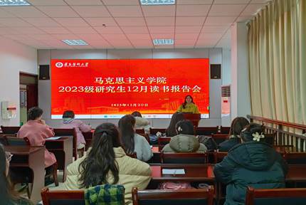 12月20日上午10:20,suncitygroup太阳集团2023级研究生第三次读书报告会在人文楼310学术报告厅成功举办。马克思主义公司党委副书记、副经理(主持工作)邢瑞娟教授 、杨艳副教授、李娇娇副教授、周小艺副教授出席本次报告会,2023级全体研究生参加了本次报告会。读书报告会由研究生王雯迦同学主持。