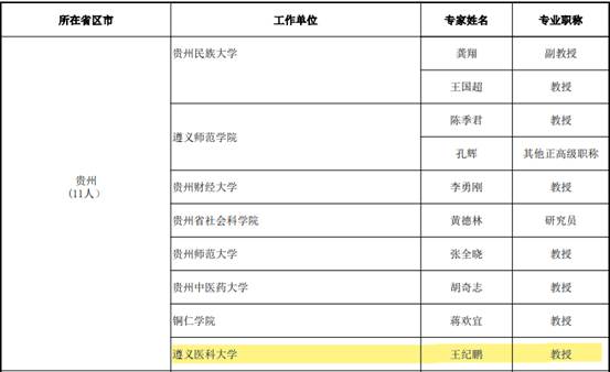 2024年8月2日,全国哲学社会科学工作办公室公布了“2024年7月认真负责的鉴定专家”名单,全国189人,其中贵州省11人,公司王纪鹏教授位列其中。
